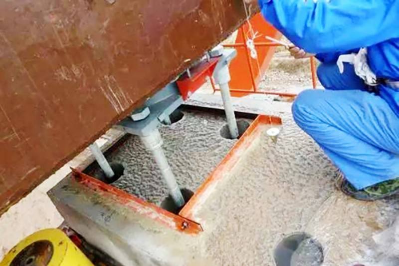 1、基層處理:清掃設備基礎表面,不得有碎石、浮漿、浮灰、油污和脫模劑等雜物。灌漿前24小時,設備基礎表面應充分濕潤,并清除積水。